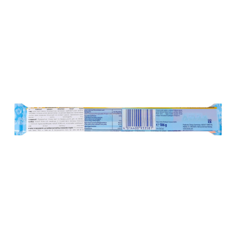 Склад: Цукор, глюкозний сироп, олія пальмова, вологоутримуючий агент: сорбітовий сироп, желатин, регулятор кислотності: кислота лимонна, ароматизатори, концентрати барвників (чорна морква, спіруліна, чорна смородина, полуничний сік), фарбувальний екстракт куркуми, карамельний сироп
