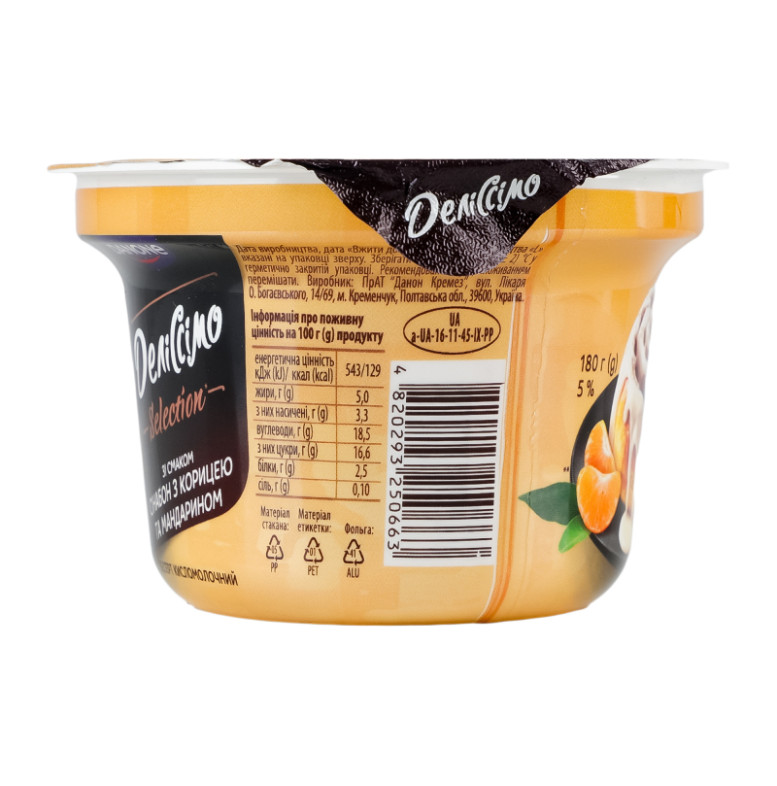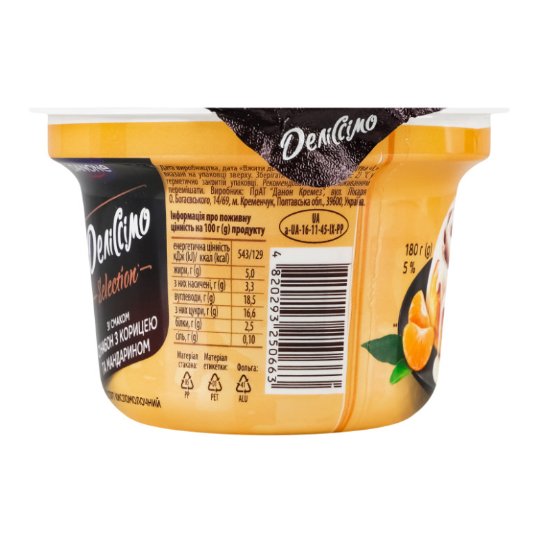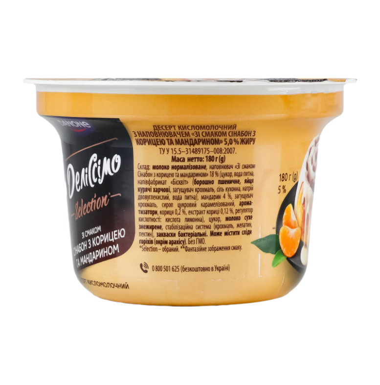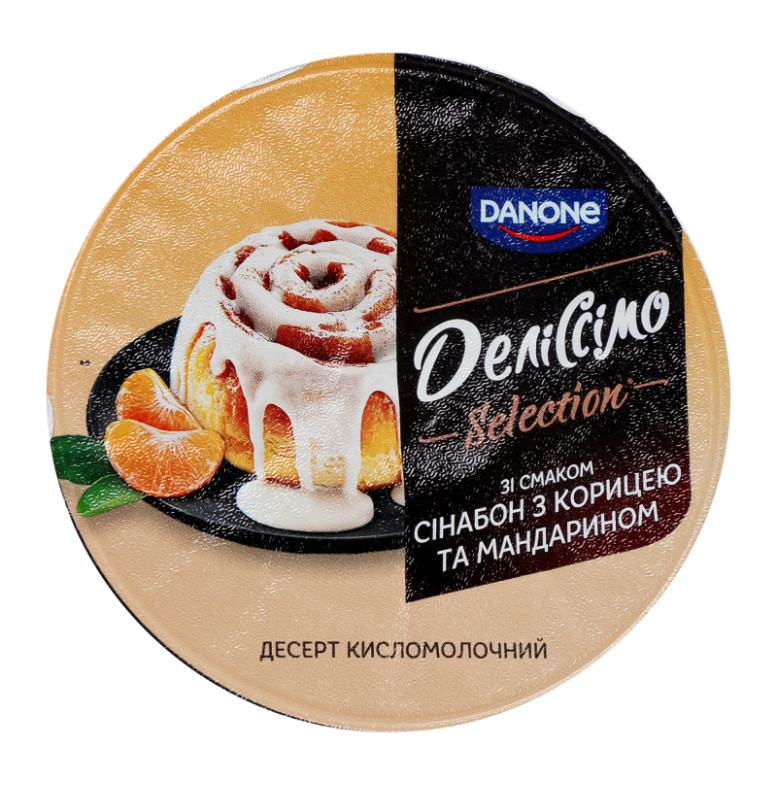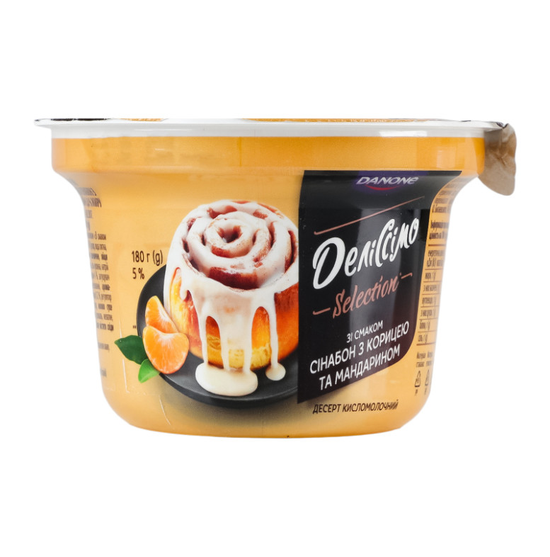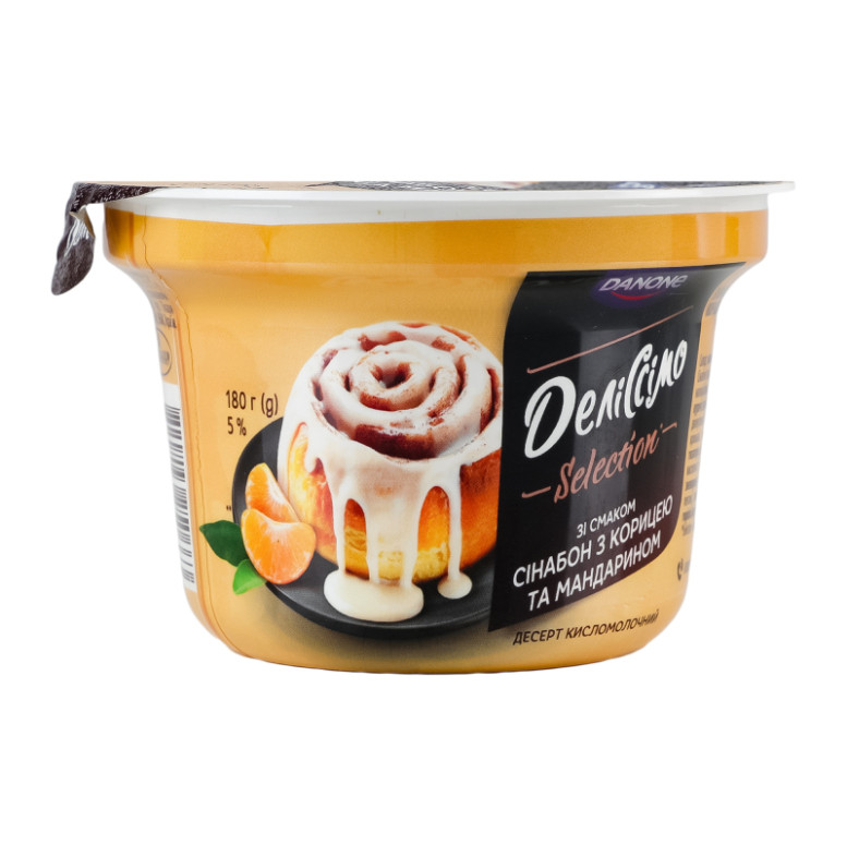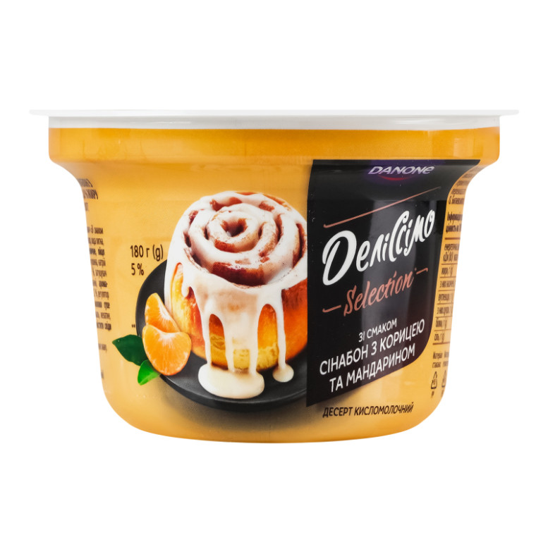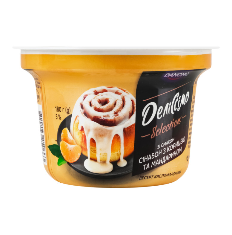 Десерт кисломолочний 5% з наповнювачем Зі смаком сінабон з корицею та мандарином Деліссімо Selection Danone ст 180г