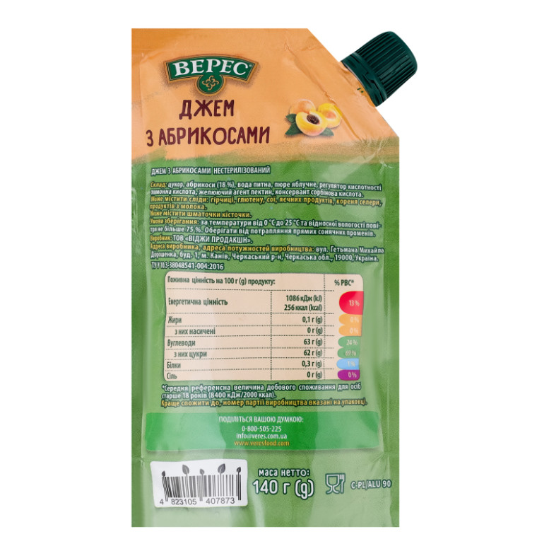 Джем з абрикосами нестерилізований Верес д/п 140г