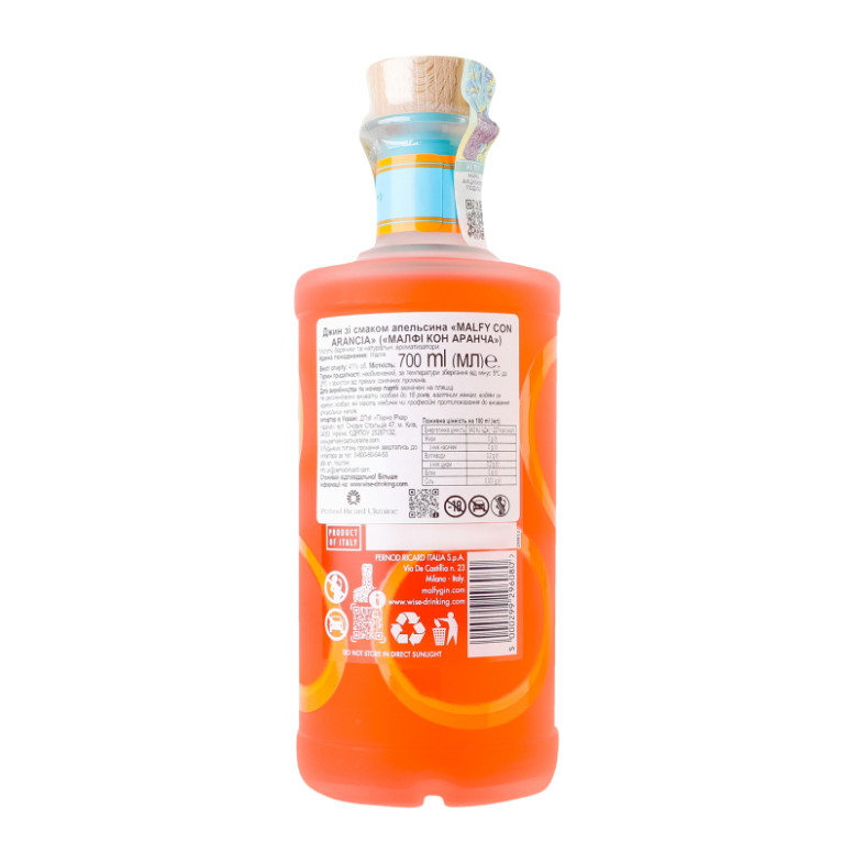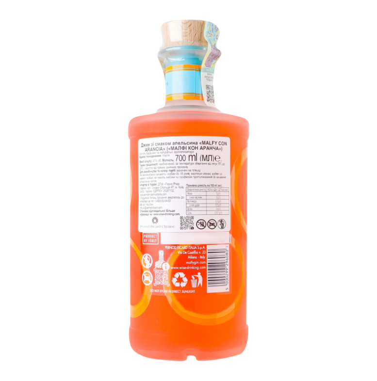 Джин 700мл 41% зі смаком апельсина Con Arancia Malfy пл