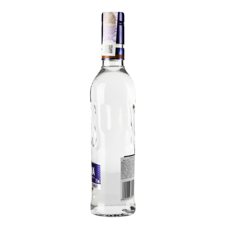 Склад: Вода джерельна підготовлена, спирт етиловий ректифікований з добірного фінського ячменю, цукор, натуральний ароматизатор кокосу