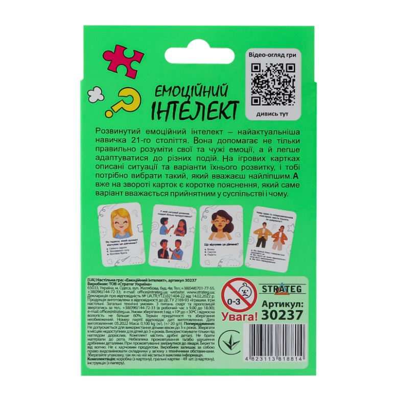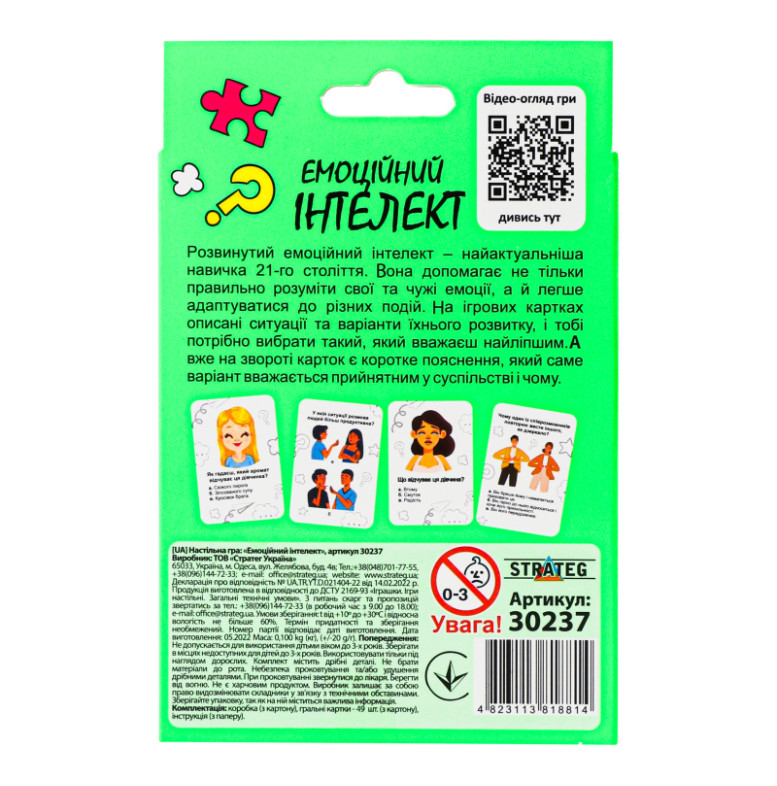 Гра настільна для дітей від 10років №30237 Емоційний інтелект Strateg 1шт
