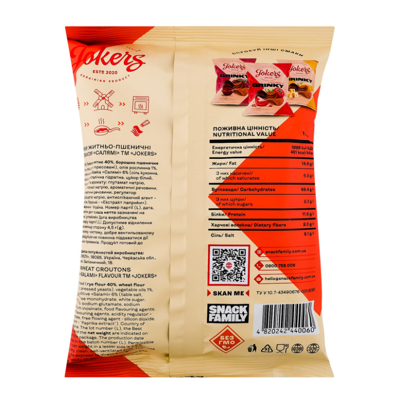 Грінки житньо-пшеничні Салямі Jokers м/у 80г