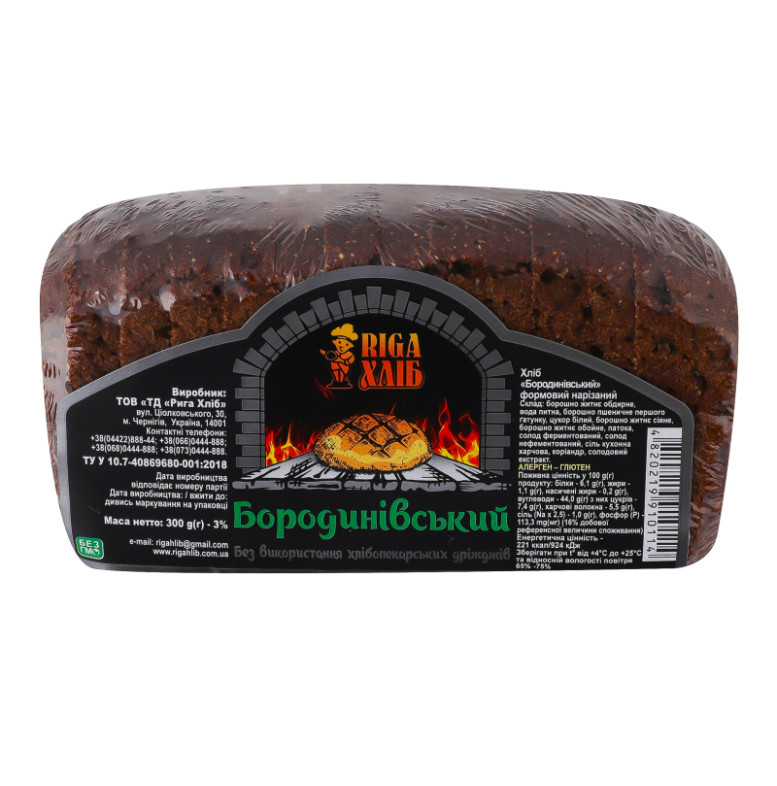 Хліб нарізний формовий Бородинівський Riga Хліб м/у 300г