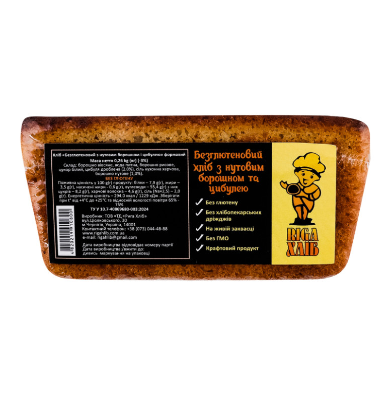Хліб формовий безглютеновий з нутовим борошном і цибулею Riga Хліб м/у 0.26кг