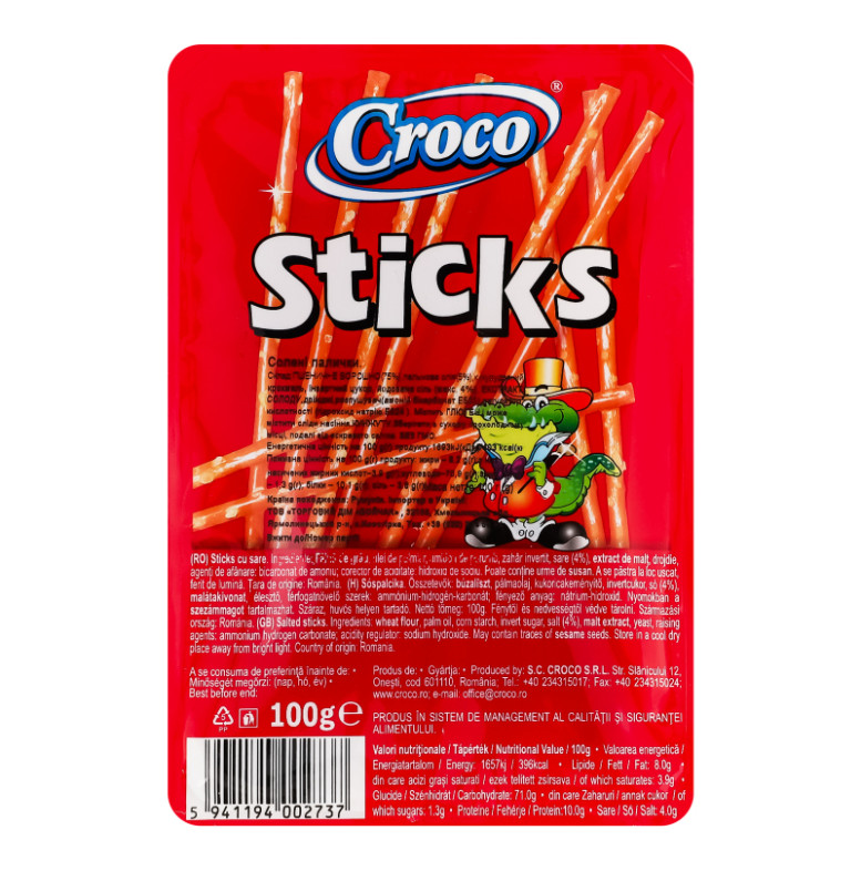 Склад: Пшеничне борошно (75%), пальмова олія (5%), кукурудзяний крохмаль, інвертний цукор, йодована сіль (макс. 4%), екстракт солоду, дріжджі, розпушувач (амоній бікарбонат Е603), регулятор кислотності (гідроксид натрію Е524)