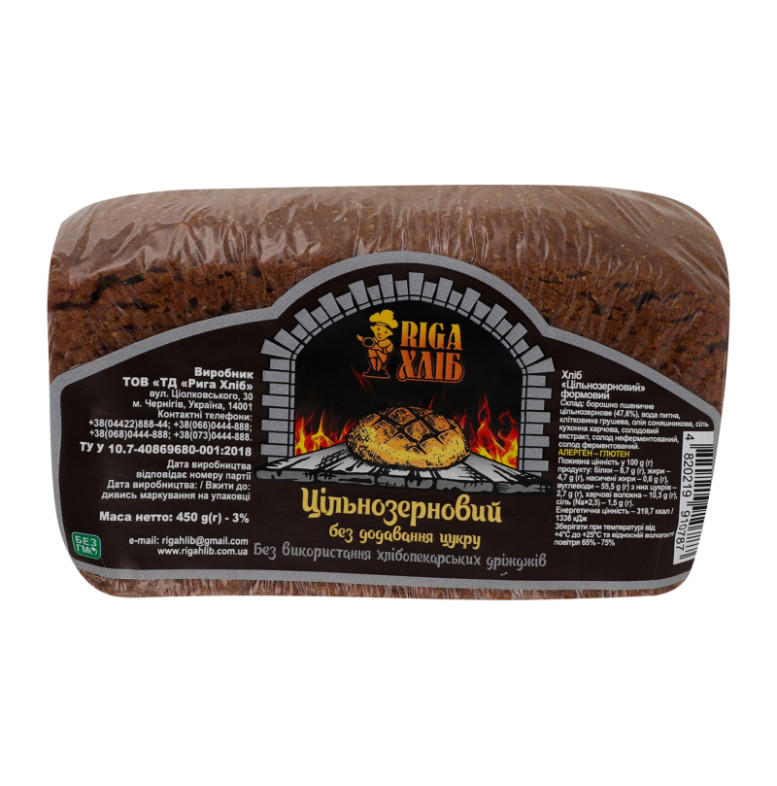 Хліб формовий без додавання цукру Цільнозерновий Riga Хліб м/у 450г
