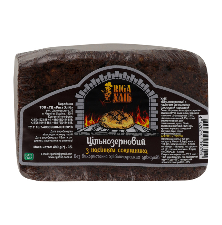 Хліб нарізний формовий Цільнозерновий з насінням соняшника Riga Хліб м/у 480г