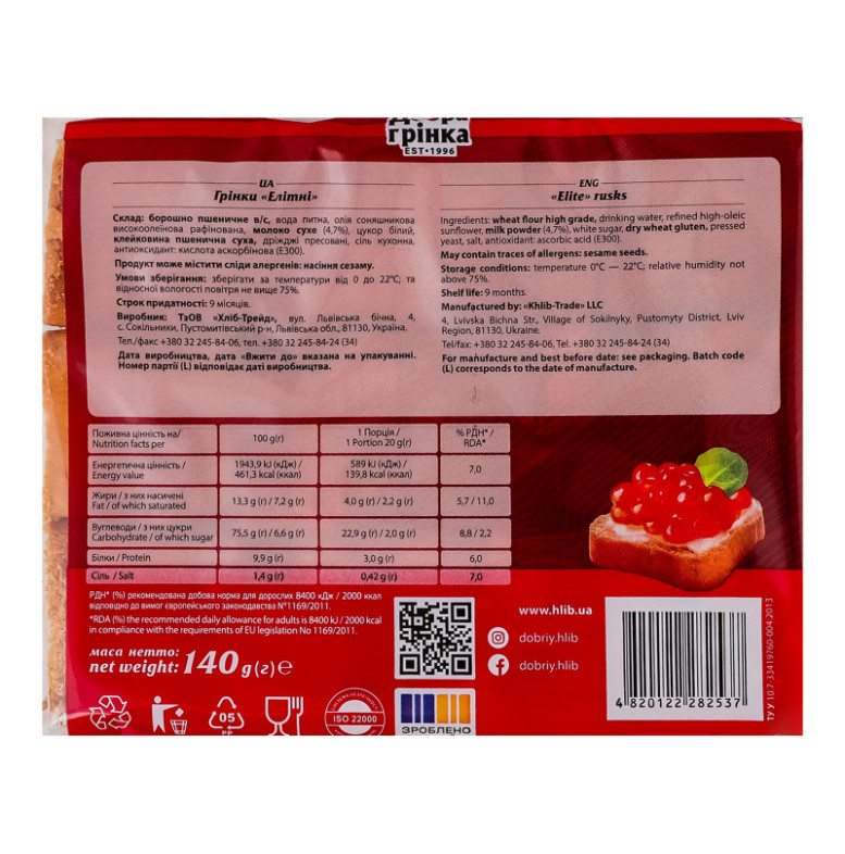 Грінки Елітні Добра грінка м/у 140г