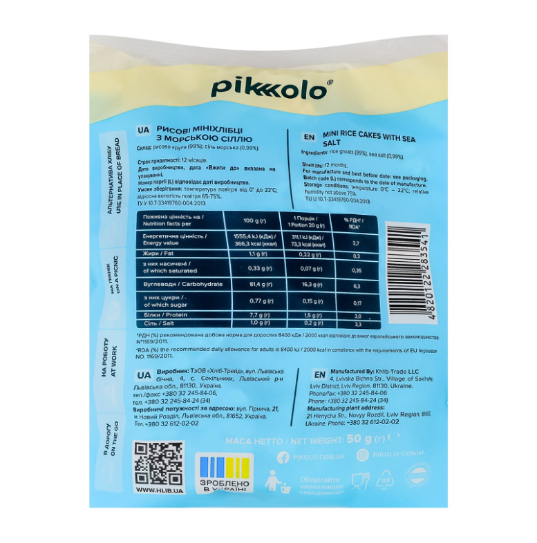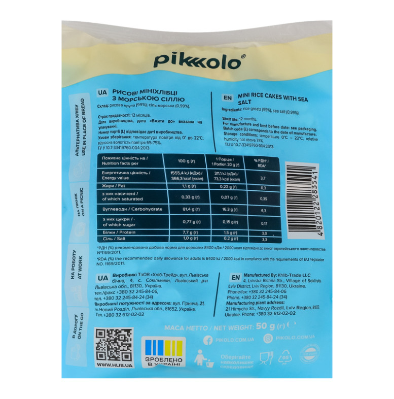 | Склад (укр.) | Рисова крупа (99%), сіль морська (0.99%) |