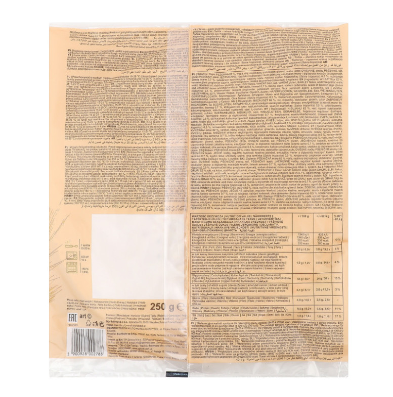 | Склад (укр.) | Борошно пшеничне (61%), вода, рослинна олія: ріпакова, стабілізатор: гліцерол, висівки пшеничні (1.8%), пластівці вівсяні (1.6%), пластівці ячмінні (1.6%), пшеничний глютен, регулятор кислотності: яблучна кислота, насіння льону (0.7%), емульгатор: моно- і дигліцериди жирних кислот, сіль, розпушувач: кальцинована сода, насіння шавлії іспанської (Salvia hispanica) 0.5%, глюкоза, консерванти: (пропонат кальцію, сорбат калію), поліпшувач борошна L-цистеїн |