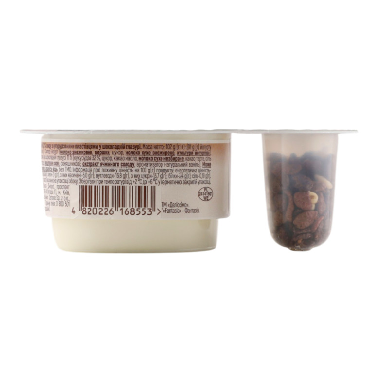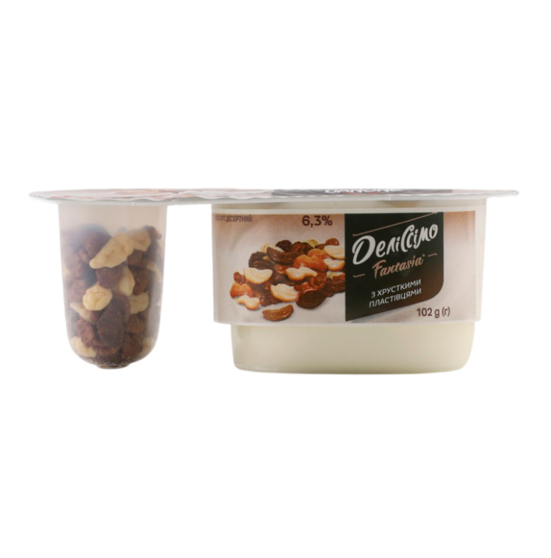 Йогурт 6.3% десертний з хрусткими пластівцями Fantasia Деліссімо ст 102г