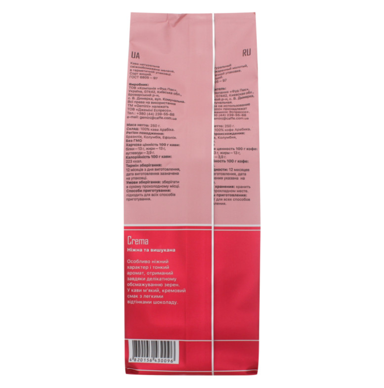 Кава натуральна смажена мелена Crema Gemini в/у 250г
