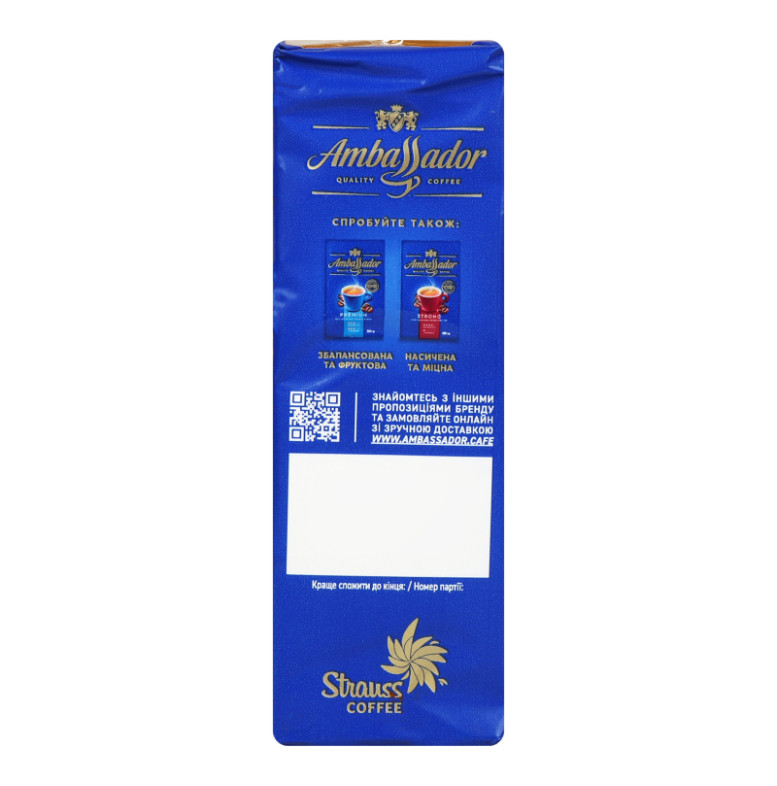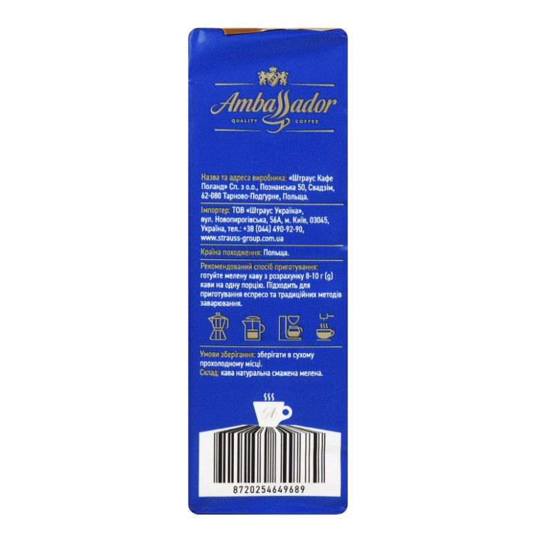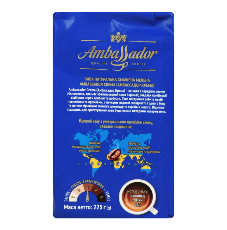 Кава натуральна смажена мелена Crema Ambassador м/у 225г
