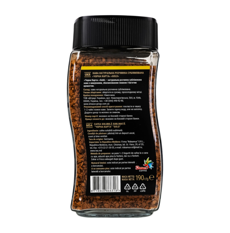 Кава натуральна розчинна сублімована Gold Чорна Карта с/б 190г