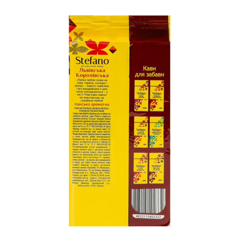 Кава натуральна смажена мелена Львівська Королівська Stefano 1ґ в/у 230г