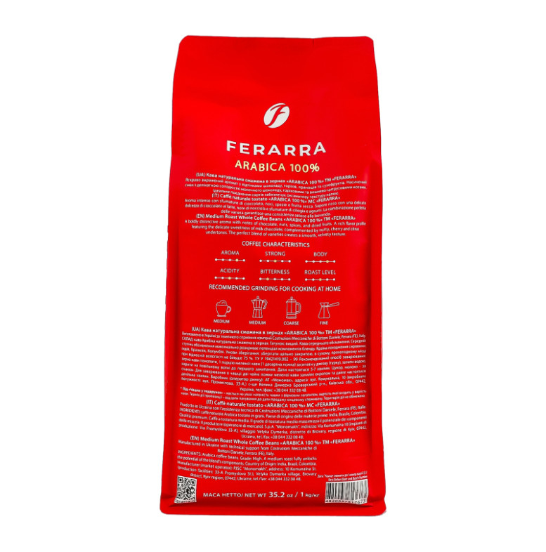 Кава натуральна смажена в зернах 100% Arabica Ferarra м/у 1кг