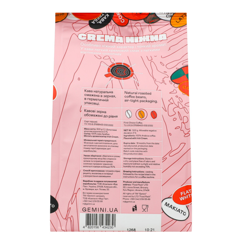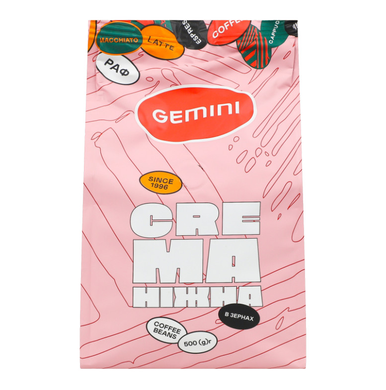 Кава натуральна смажена в зернах Ніжна Crema Gemini м/у 500г