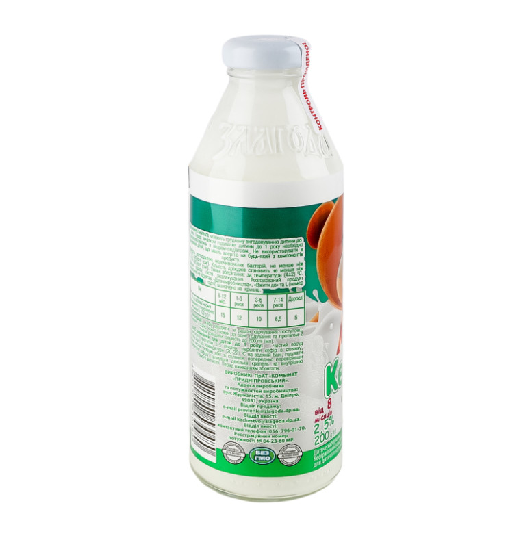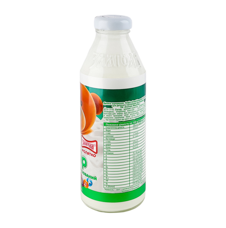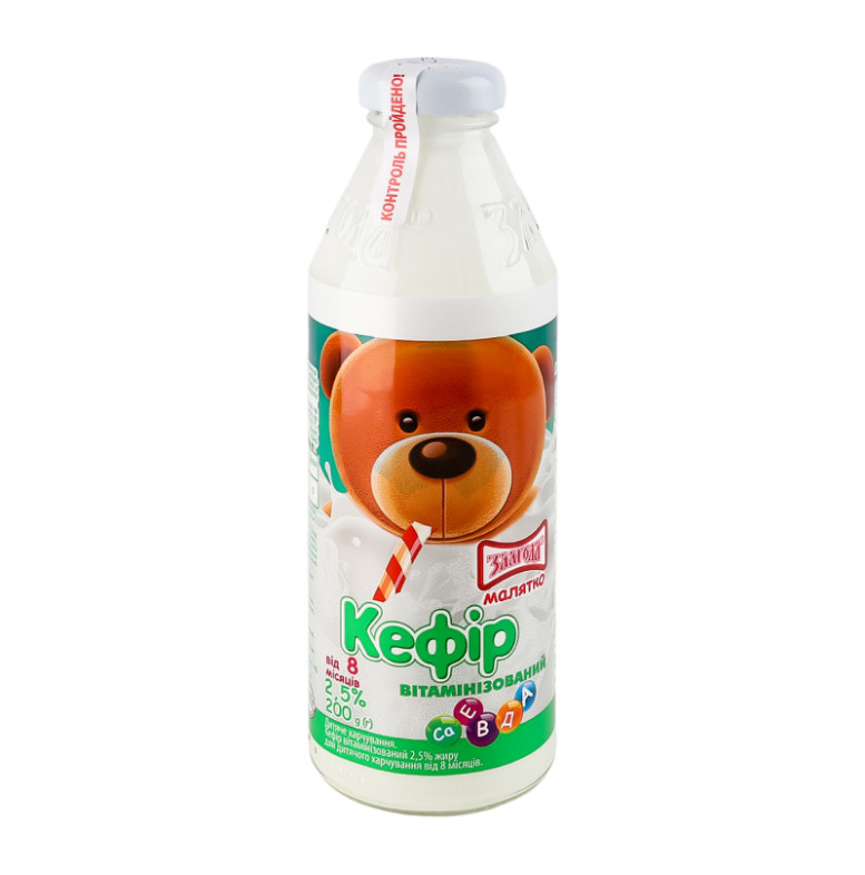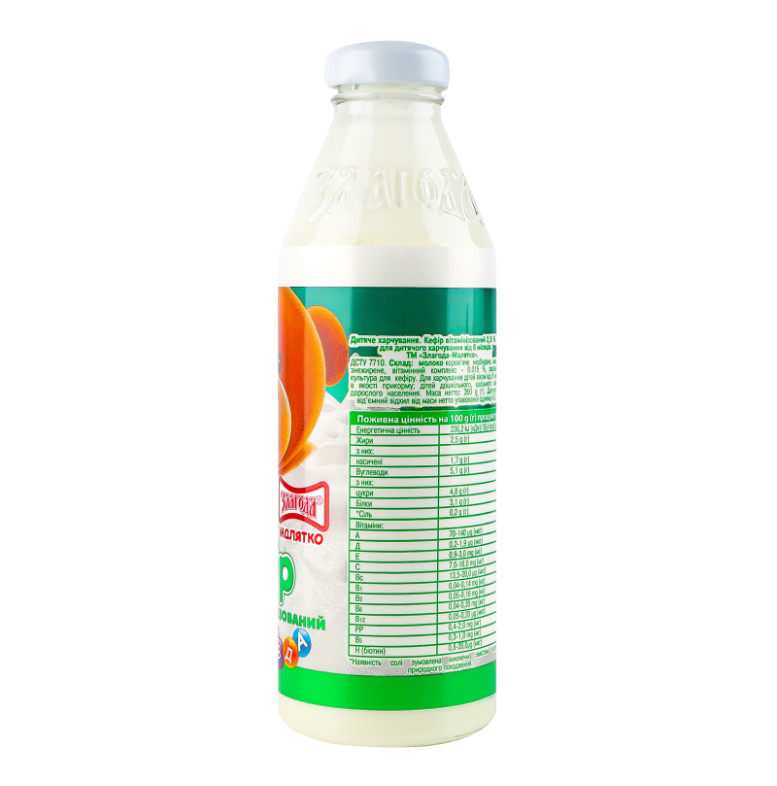 Склад (укр.): Молоко коров'яче незбиране, молоко знежирене, вітамінний комплекс - 0.015%, заквасочна культура для кефіру