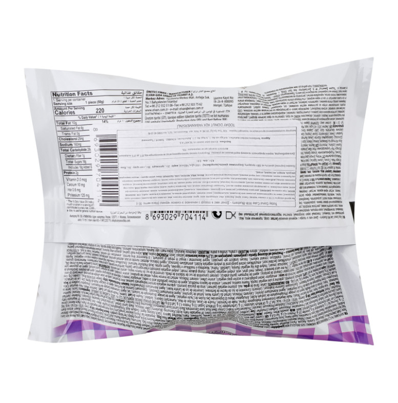 | Склад (укр.) | Цукор, борошно, яйце, кукурудзяне борошно, цукор, пшеничне борошно, яйце, рослинна олія (пальмова), глюкозний сироп (кукурудзяна), повністю гідрогенізована рослинна олія (пальмова, пальмоядрова), какао-порошок, кукурудзяний крохмаль, зволожувачі (гліцерин, сорбіт), сухе знежирене молоко, суха сироватка (молоко), декстроза (кукурудза), рослинна олія (ріпакова, соняшникова, пальмова), модифікований крохмаль тапіоки, розпушувач (ацидофосфат натрію), емульгатор (моно- та дигліцериди рослинних жирних кислот), розпушувач (бікарбонат натрію), сіль, консервант (сорбат калію), емульгатор лецитин (соя), емульгатор (полігліцеринові ефіри рослинних жирних кислот), ароматизатор (чорниця), барвник (гібіскус, екстракт чорної моркви, екстракт спіруліни), ароматизатор (шоколад), загущувач (ксантанова камедь), відбілювач (пальмова олія, бджолиний віск, карнаубський віск), кислота (лимонна), стабілізатор (стеарат калію), загущувач (камедь, барвники (концентрат соку бурякового кореня, концентрат соку чорної моркви), ароматизатор (етиловий ванілін) |