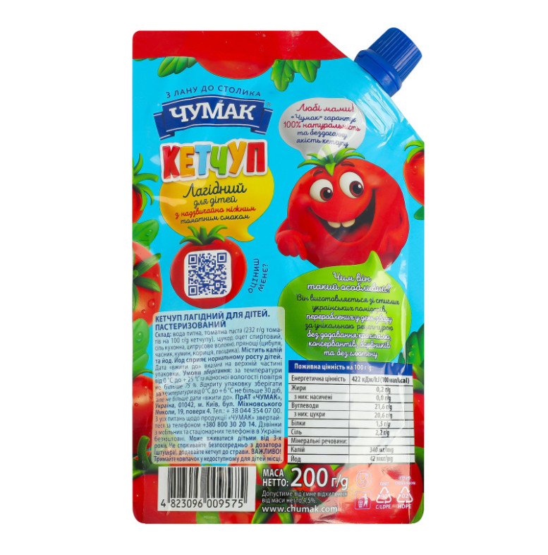 Кетчуп для дітей від 3років пастеризований Лагідний Чумак д/п 200г