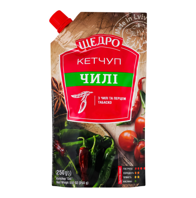 Кетчуп з чилі та перцем табаско пастеризований Чилі Щедро д/п 250г