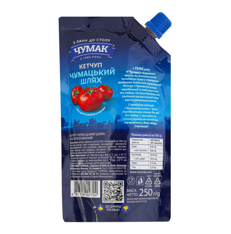 Кетчуп пастеризований Чумацький шлях Чумак д/п 250г