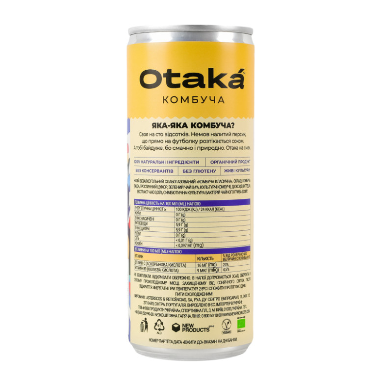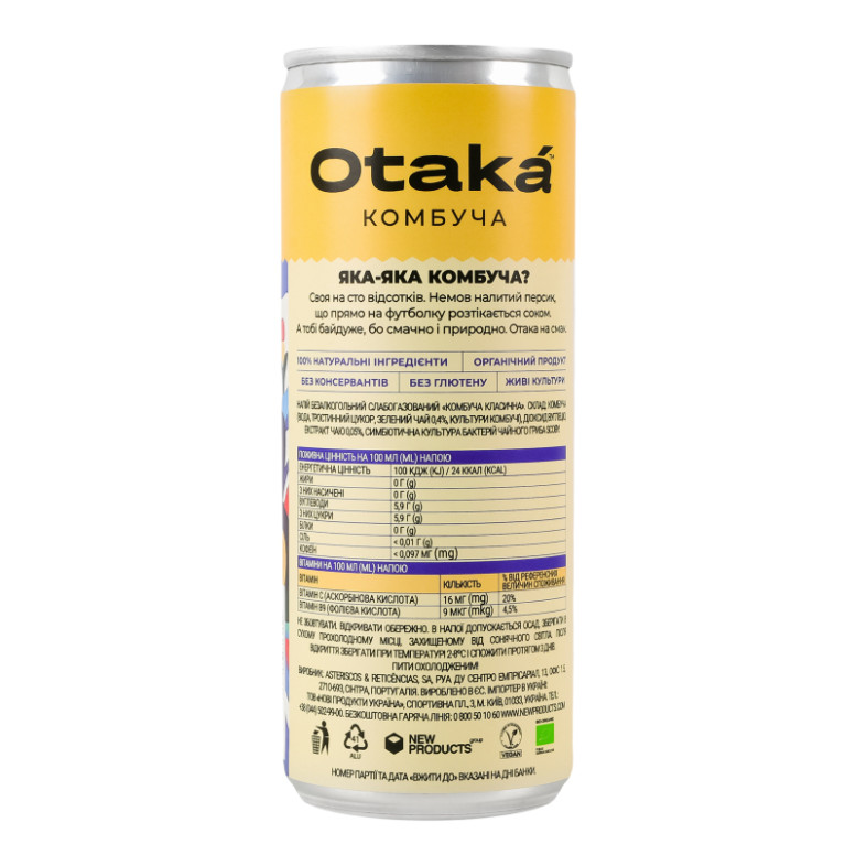 Напій безалкогольний слабогазований Класична Комбуча Otaka з/б 250мл