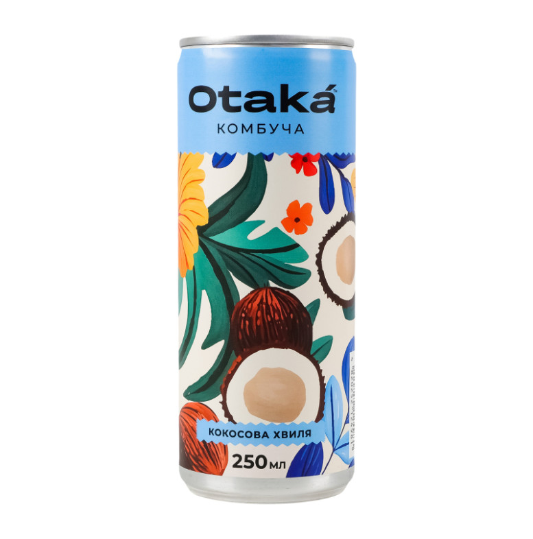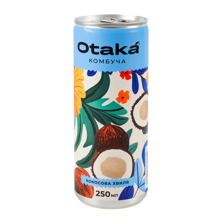 Напій безалкогольний слабогазований Кокосова хвиля Комбуча Otaka з/б 250мл