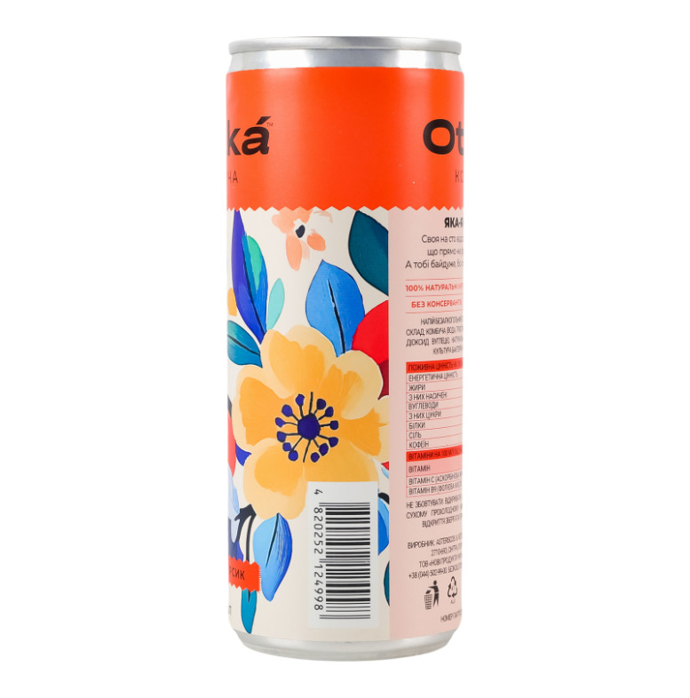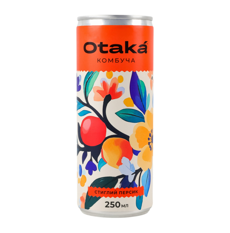 Напій безалкогольний слабогазований Стиглий персик Комбуча Otaka з/б 250мл