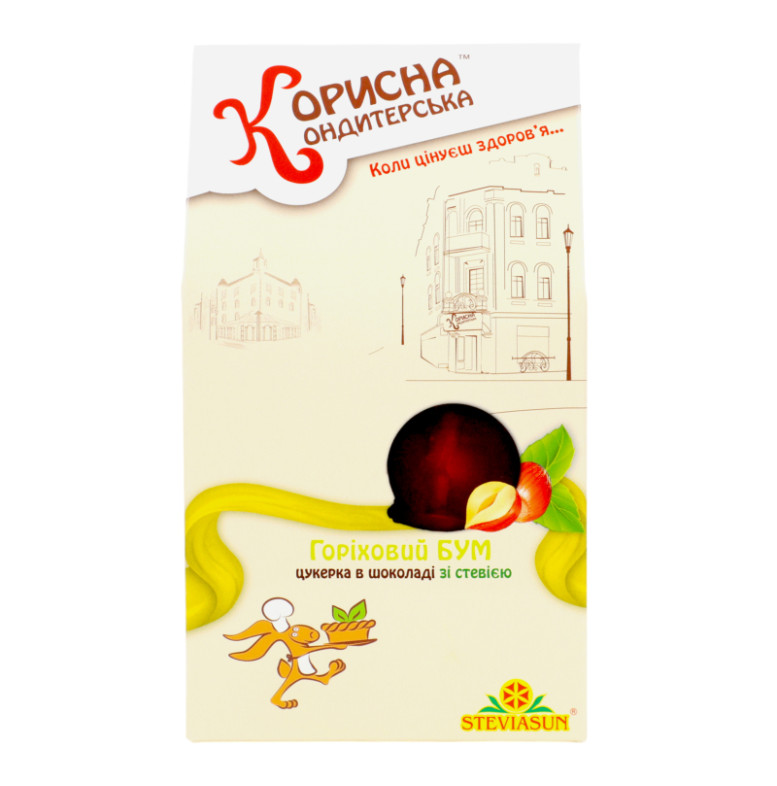 Цукерка в шоколаді зі стевією Горіховий бум Корисна Кондитерська к/у 150г