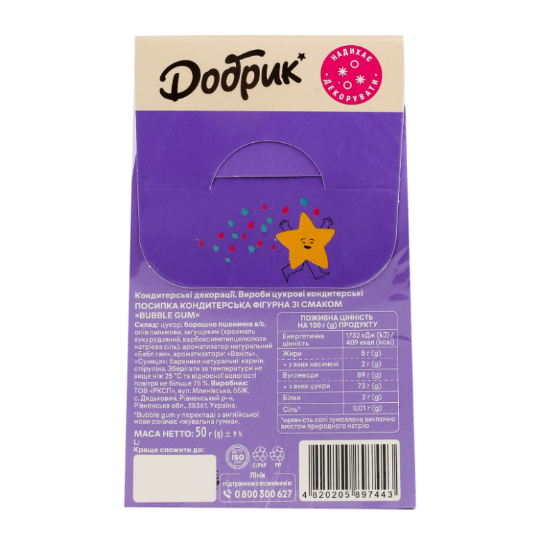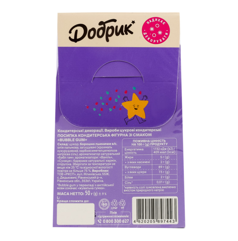 Посипка кондитерська фігурна Bubble gum Добрик к/у 50г