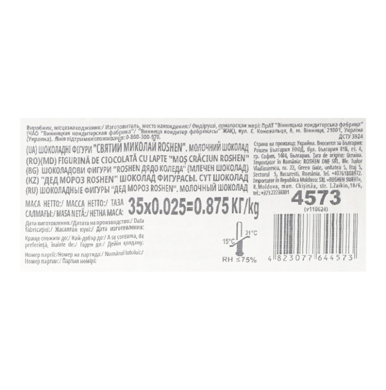 Фігура з молочного шоколаду Святий Миколай Roshen м/у 25г