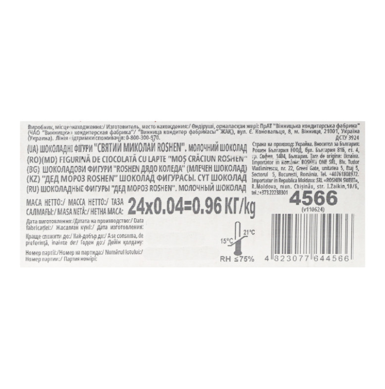 Фігура з молочного шоколаду Святий Миколай Roshen м/у 40г