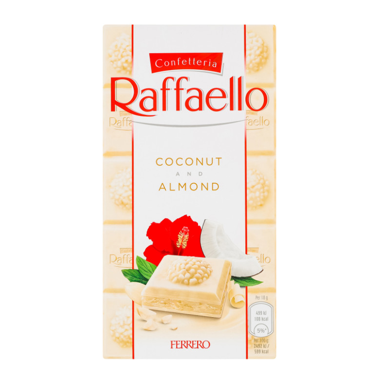 Шоколад білий з кокосово-мигдальною начинкою Raffaello к/у 90г