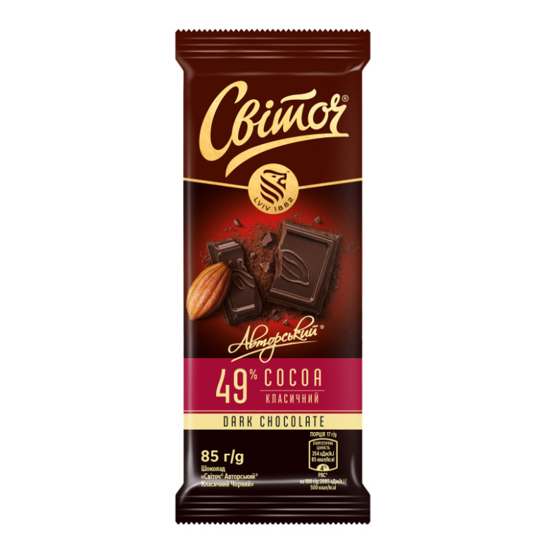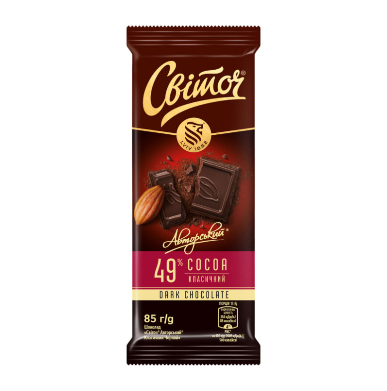 Шоколад 49% чорний Авторський класичний Світоч м/у 85г