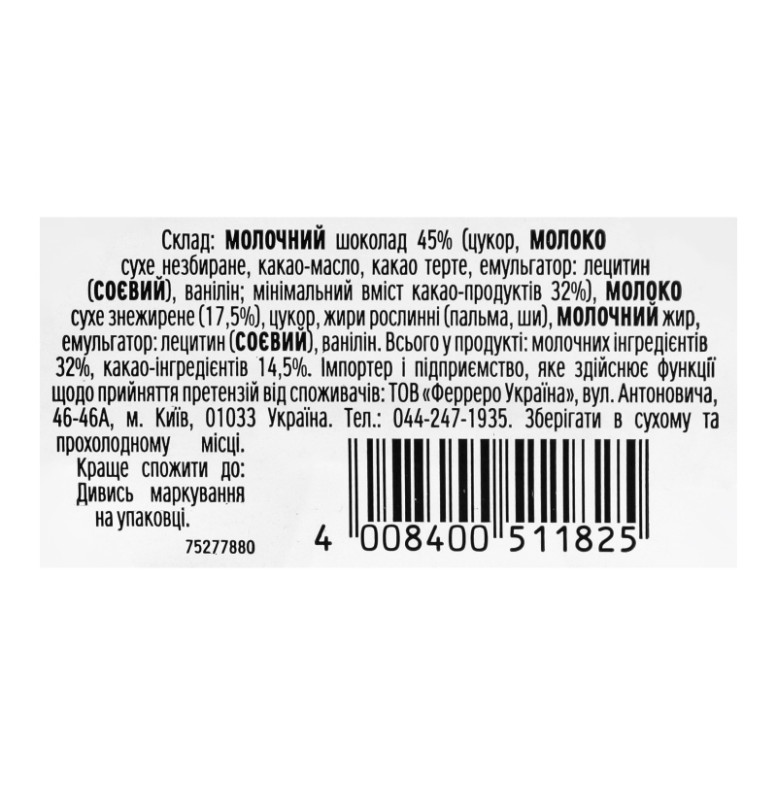 Шоколад фігурний молочний з молочним шаром всередині Kinder м/у 110г