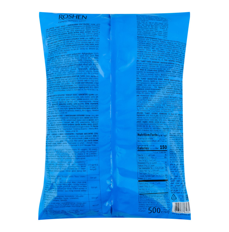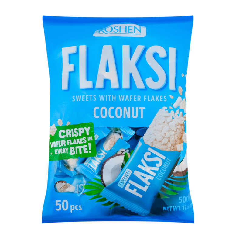 Цукерки з вафельними пластівцями Кокос Flaksi Roshen м/у 500г