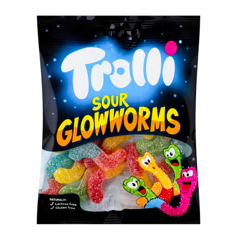 Цукерки жувальні ароматизовані Sour glowworms Trolli м/у 100г