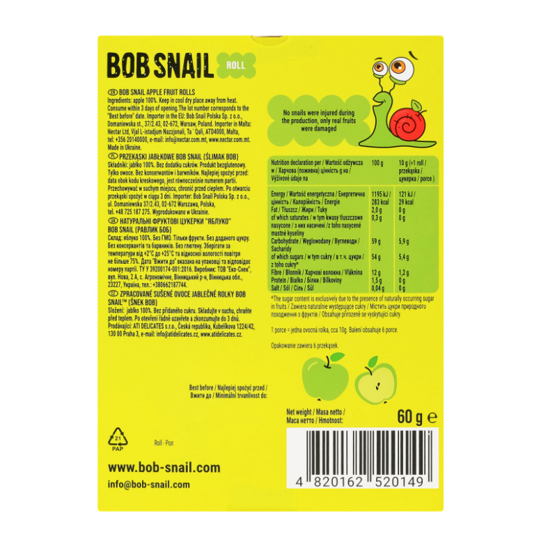 Цукерки фруктові натуральні Aблуко Roll Bob Snail к/у 60г