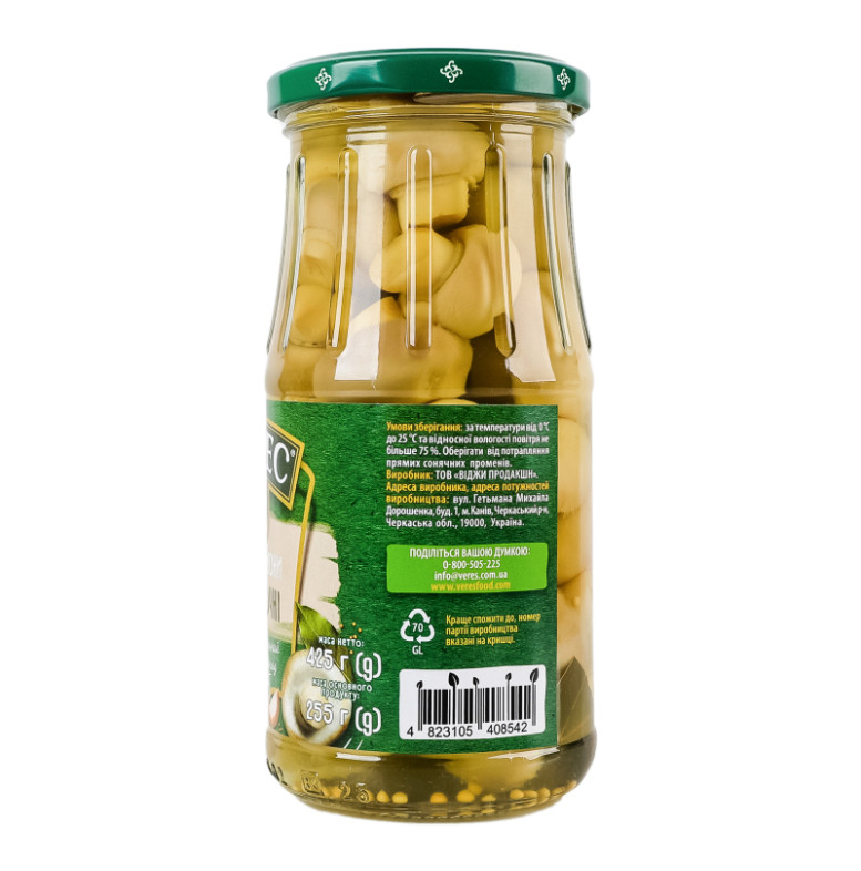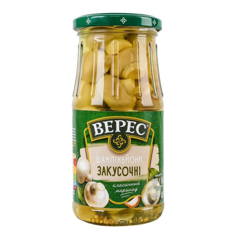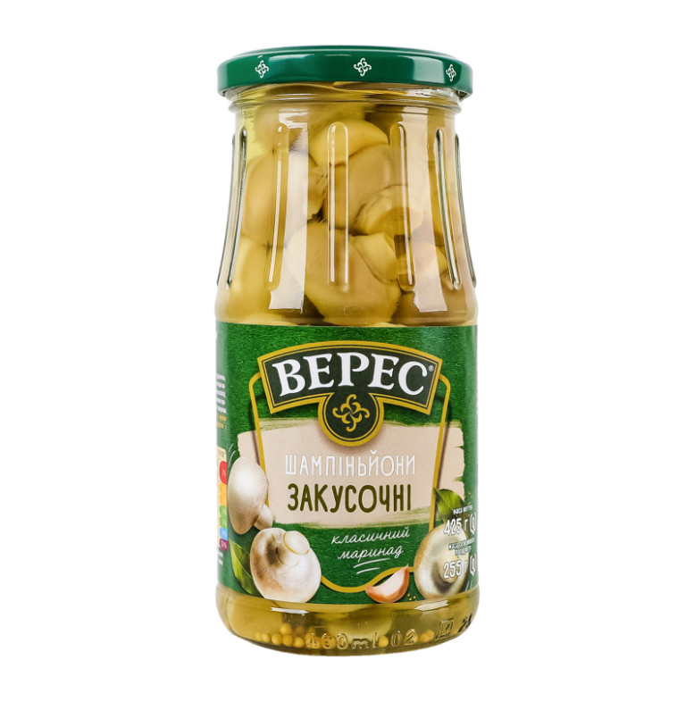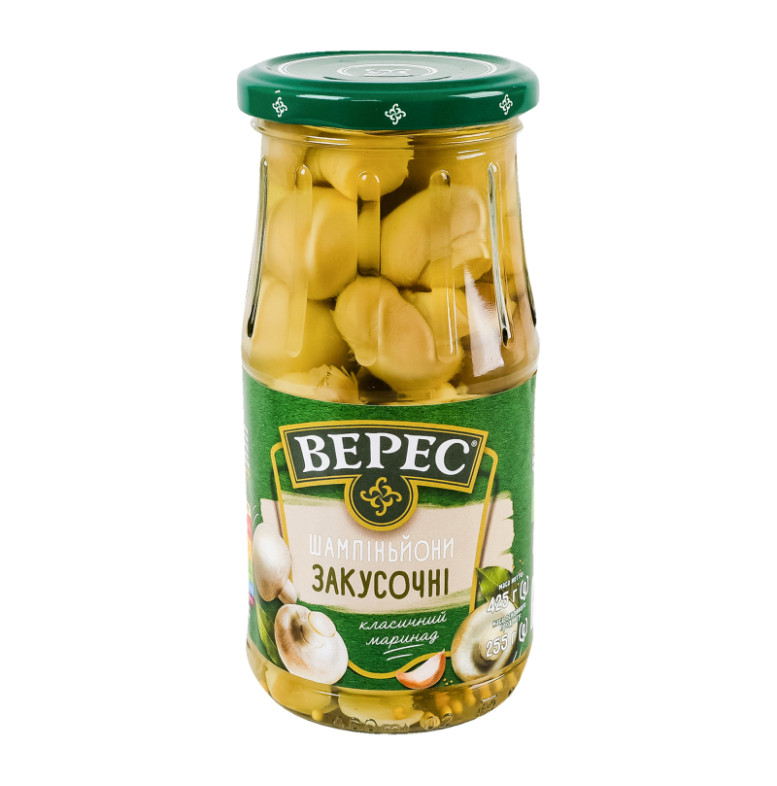 Шампіньйони мариновані стерилізовані Закусочні Верес 1ґ с/б 425г
