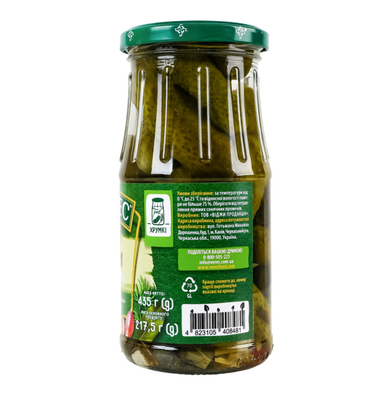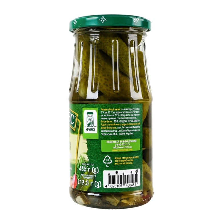 Огірки мариновані слабокислі стерилізовані Верес с/б 435г