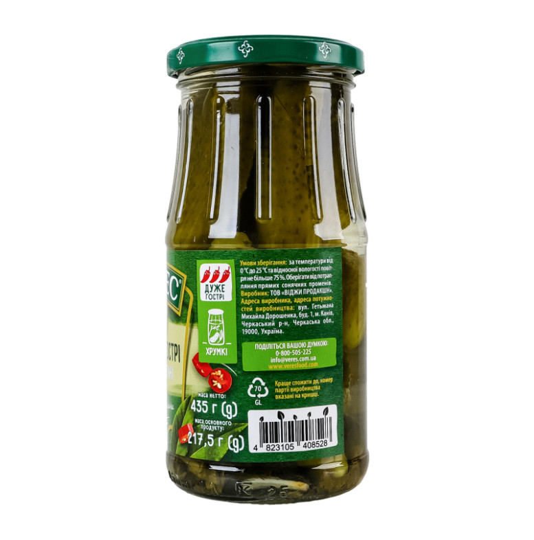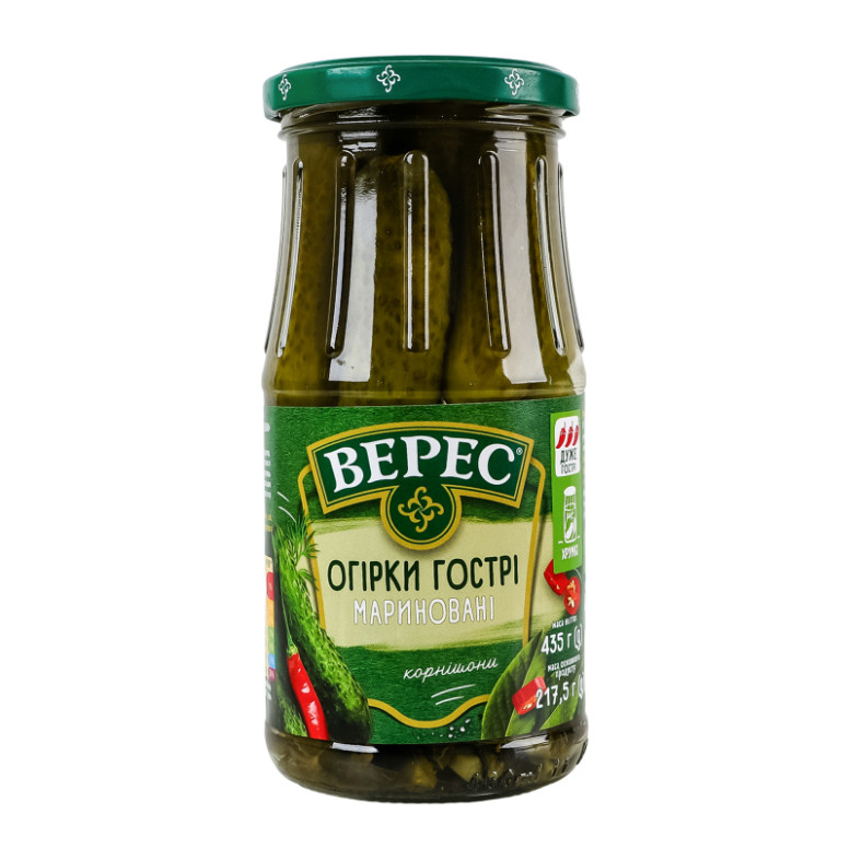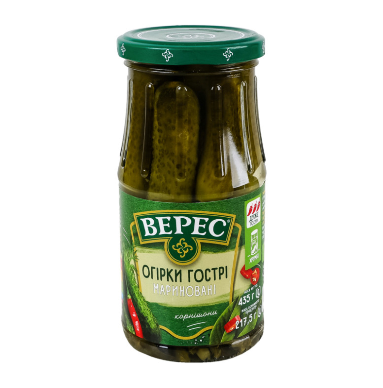 Огірки гострі мариновані стерилізовані Верес с/б 435г