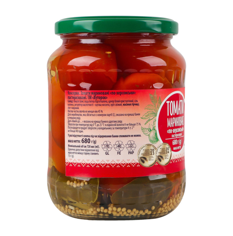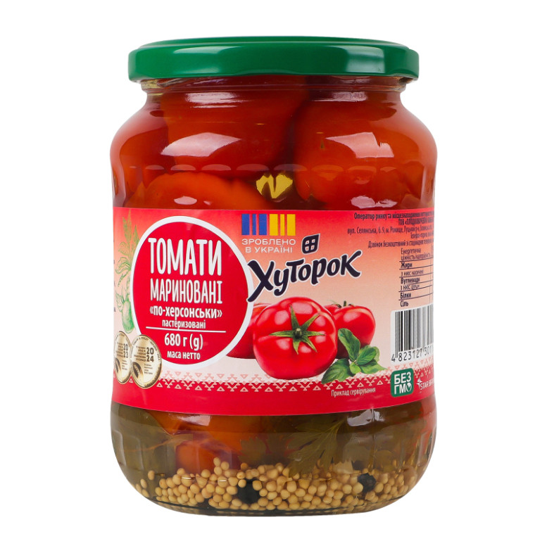 Томати мариновані пастеризовані По-херсонськи Хуторок с/б 680г