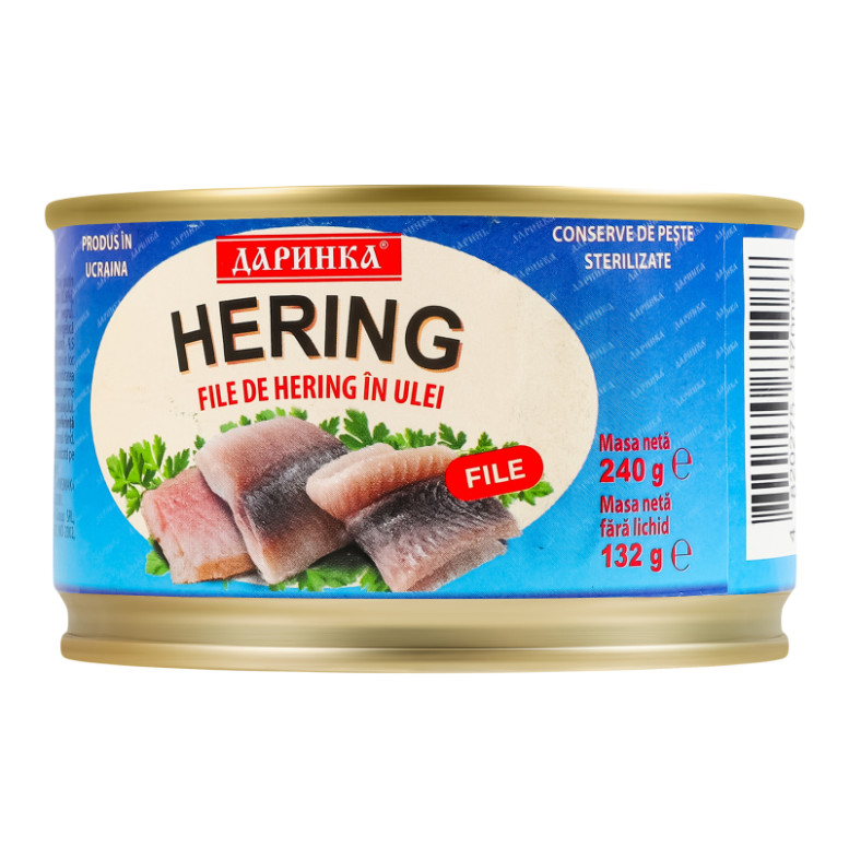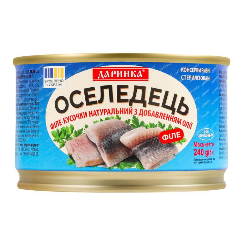 Оселедець натуральний стерилізований філе-кусочки з добавленням олії Даринка з/б 240г