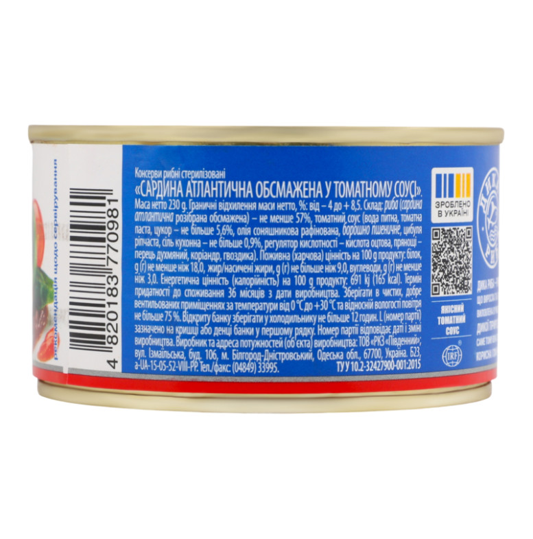 Сардина атлантична обсмажена в томатному соусі Аквамарин з/б 230г