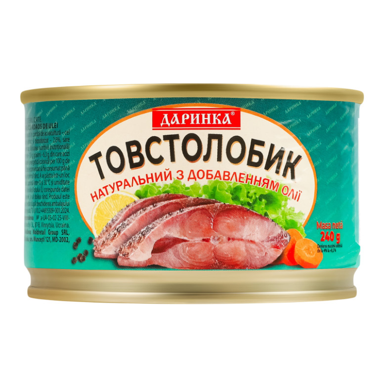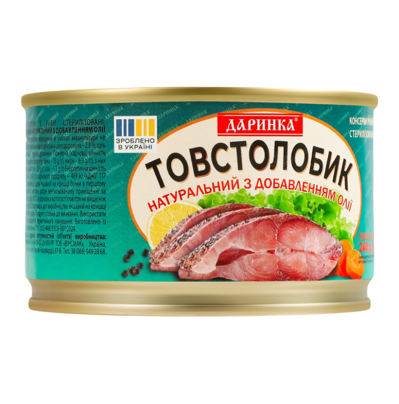 Товстолобик натуральний стерилізований з добавленням олії Даринка з/б 240г