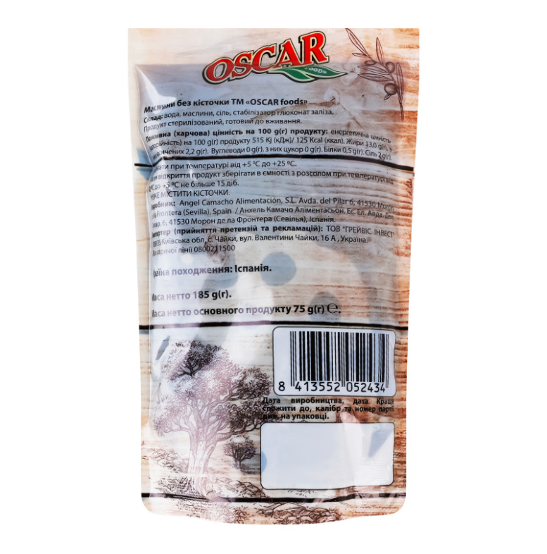 Маслини без кісточки Oscar foods д/п 185г