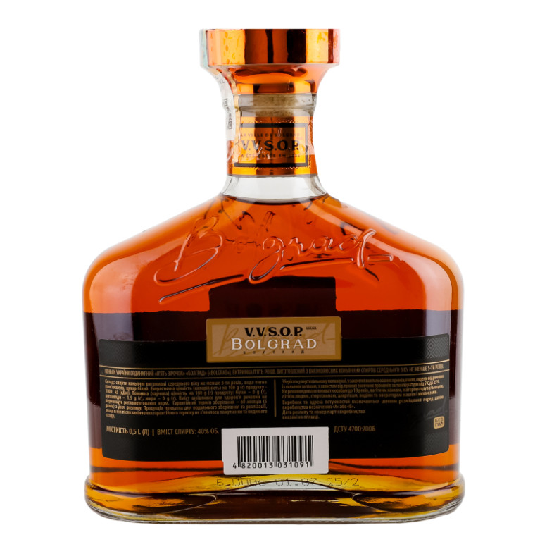 Коньяк 0.5л 40% ординарний 5 зірок VVSOP Bolgrad пл