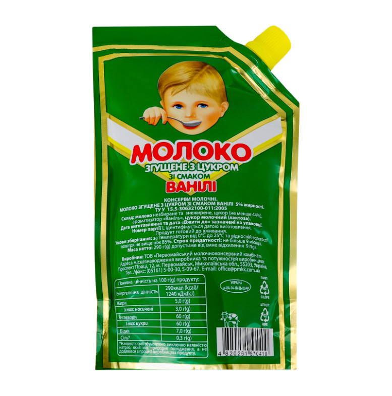 Молоко згущене 5% з цукром зі смаком ванілі Первомайський МКК д/п 290г